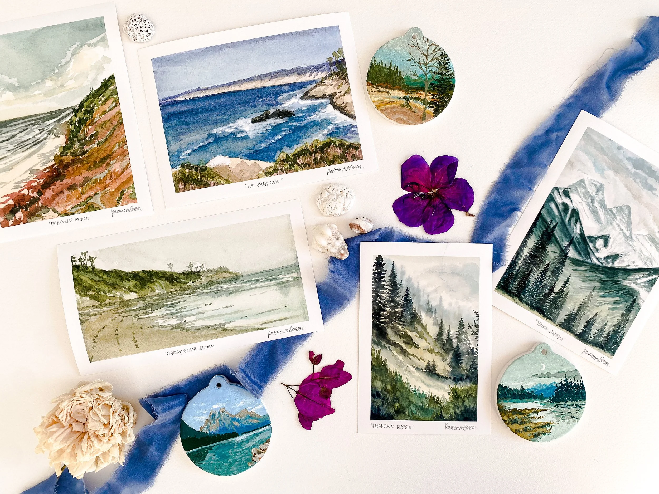 For this year’s holiday gift shop I created a small collection of ceramic ornaments painted in gouache which were also available as custom preorders. I released five beautifully curated print bundles available at a discounted price. I chose not to offer a collection of birch paintings this year, but was asked to offer them as custom preorders as well. Your support over the holiday season is so heartwarming to me and my family, and allows me the flexibility to take care of our needs during the slower seasons of the coming year. I can’t express how truly grateful we are.
