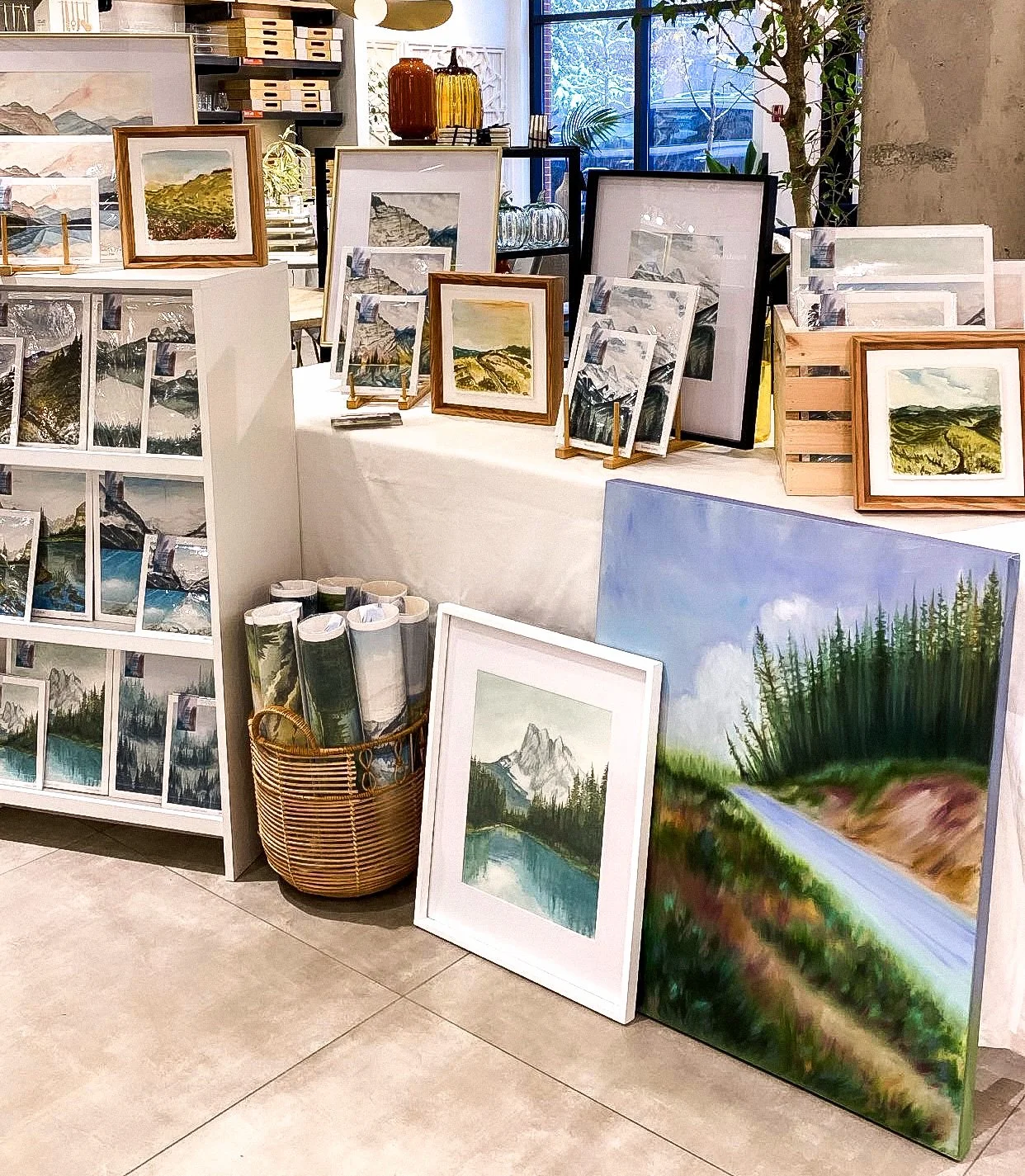 I participated in more markets this year than I ever have in years past. I had a goal to be more involved in the local community this year, and was grateful for your support. In October, I participated in the Etsy Calgary market, and a local pop up at West Elm Calgary which were both new experiences for me. I participated in the Kananaskis Christmas Market for the third time in November, and was overwhelmed with the enthusiasm of everyone who came to support local vendors. This was the busiest and most profitable market I have participated in yet! I also participated in the Peak to Prairie market in Calgary in December and was grateful for the response to my work. This introverted artist has finally found a way of sharing and talking about my work in person, which feels exciting.