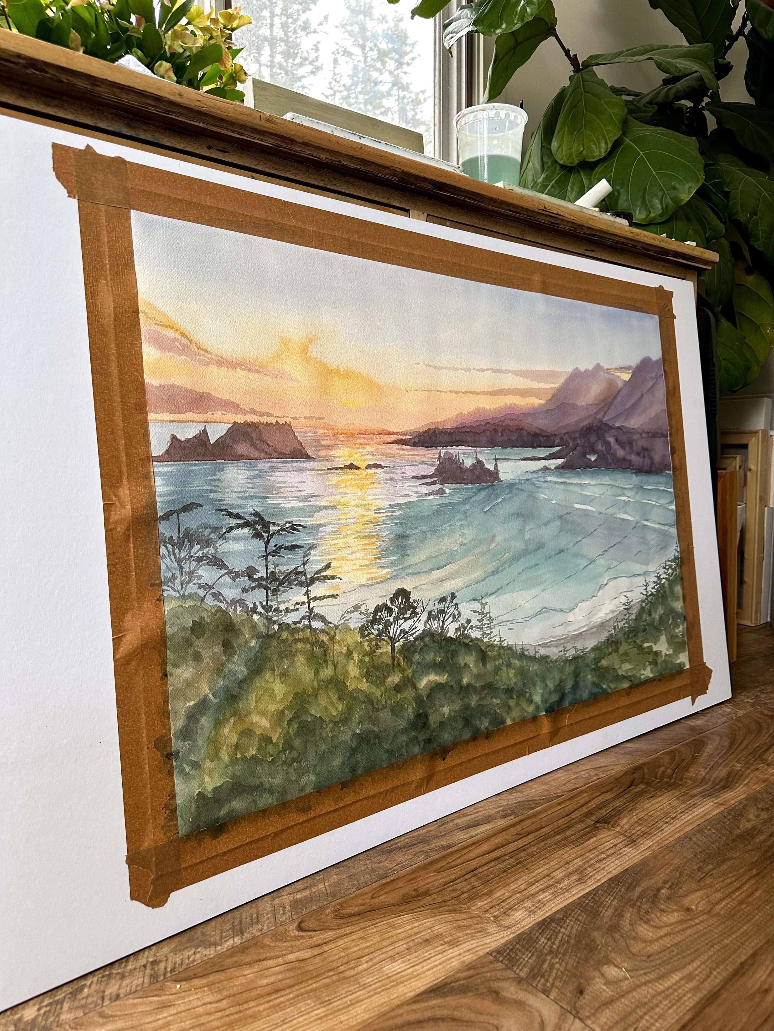 Watercolor Painting of Cox Beach Lookout in Progress