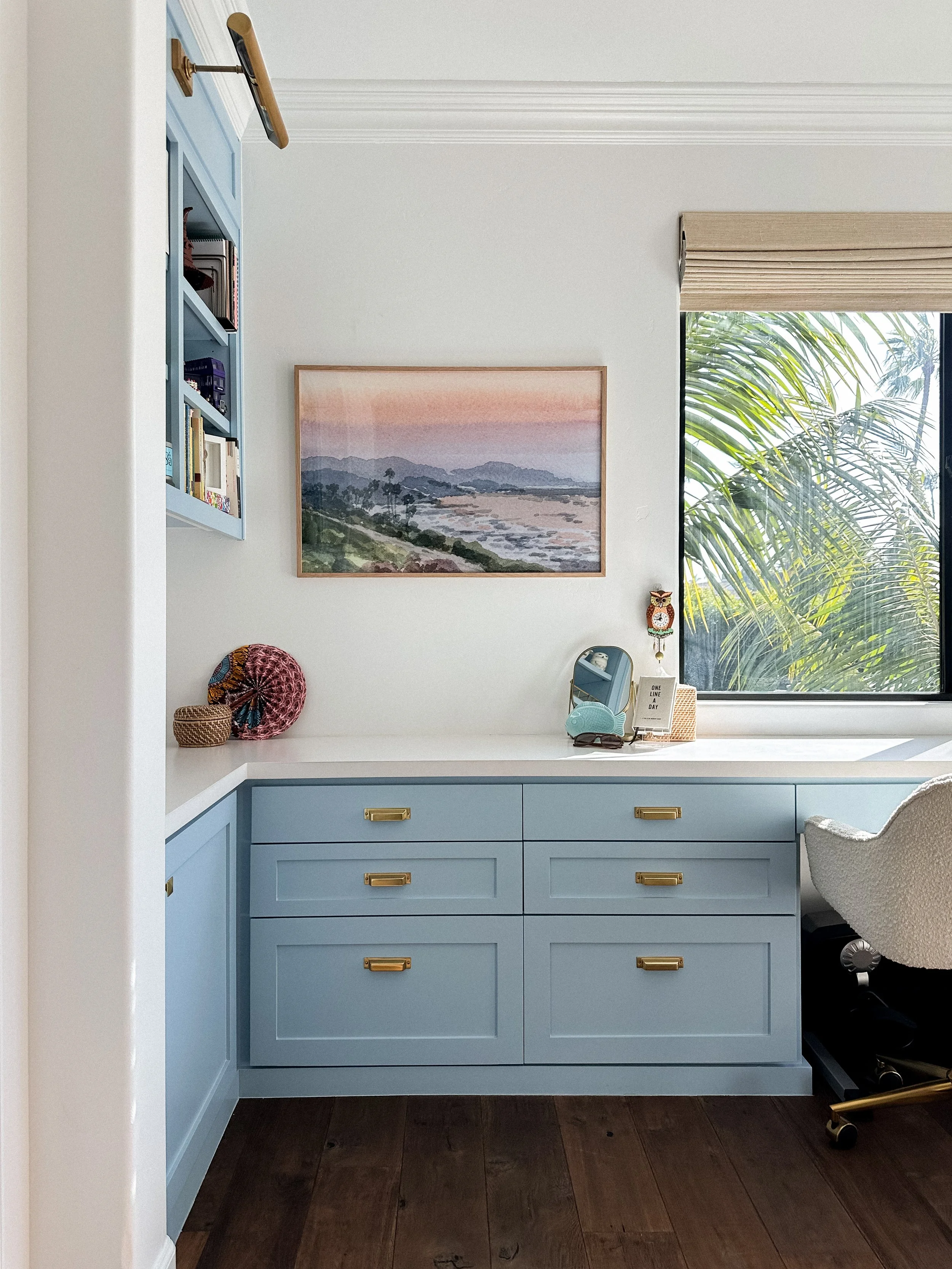 I also took a few larger coastal prints with me, framed them in solid oak, and photographed them in my sister's beautiful home (seen above) before they went off to be sold through Bliss101 in Encinitas. Selling larger prints through retail stores is an exciting new area of my business that I'm exploring this year. My prints look especially beautiful in sizes 24x36" and up. I hope this will be a successful addition to my work, while alleviating the pressure to constantly paint new pieces.