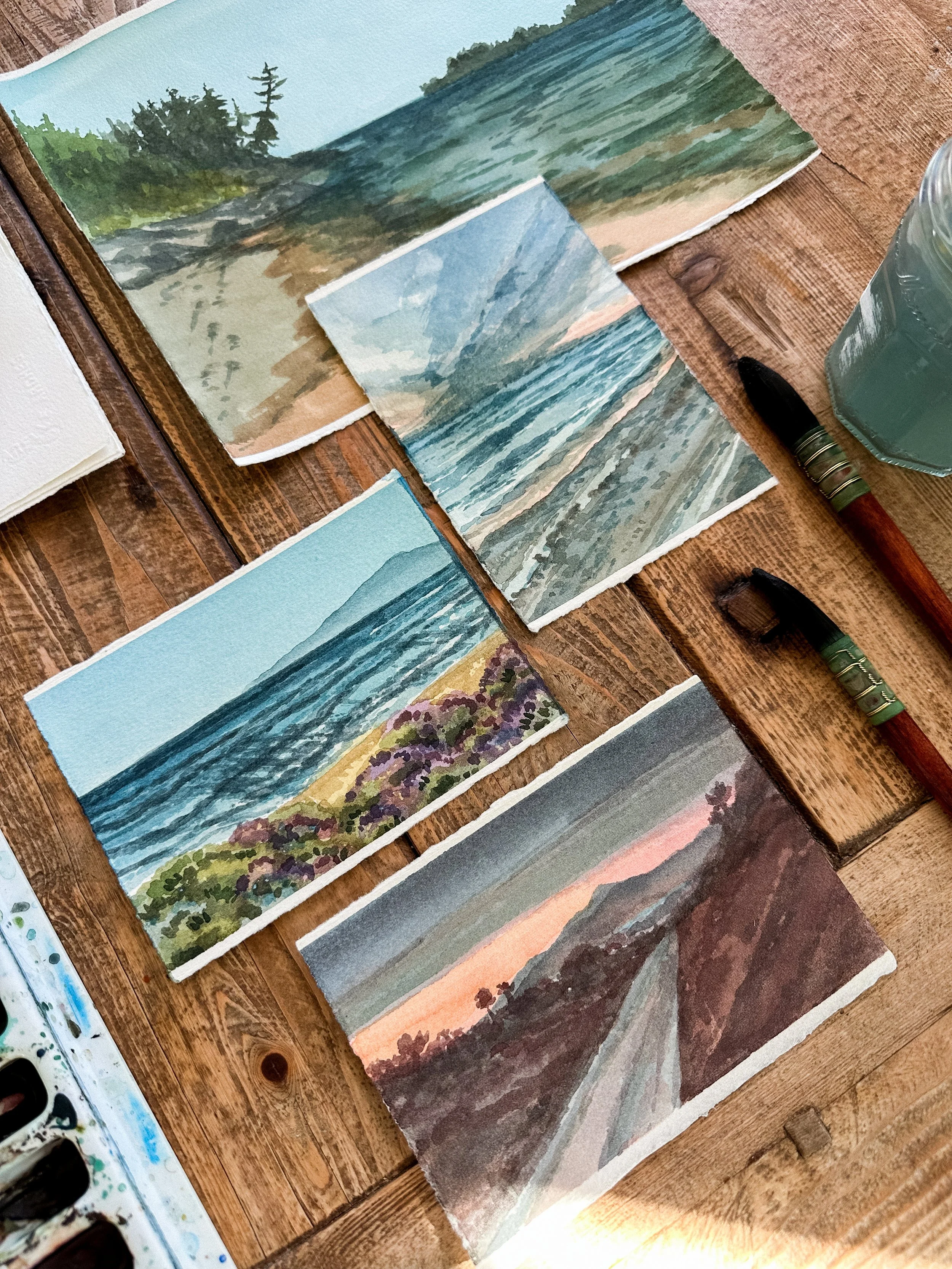 I spent the last two weeks of January in Southern California. Time with family in the warm sunshine was a much needed refreshing break full of inspiration. I intentionally spent time each day riding a bike to the beach, exploring nature, and I even managed to do a bit of work. I can't help but paint when I'm inspired by a beautiful landscape, even though I had zero intention of painting any new scenes from Southern California.