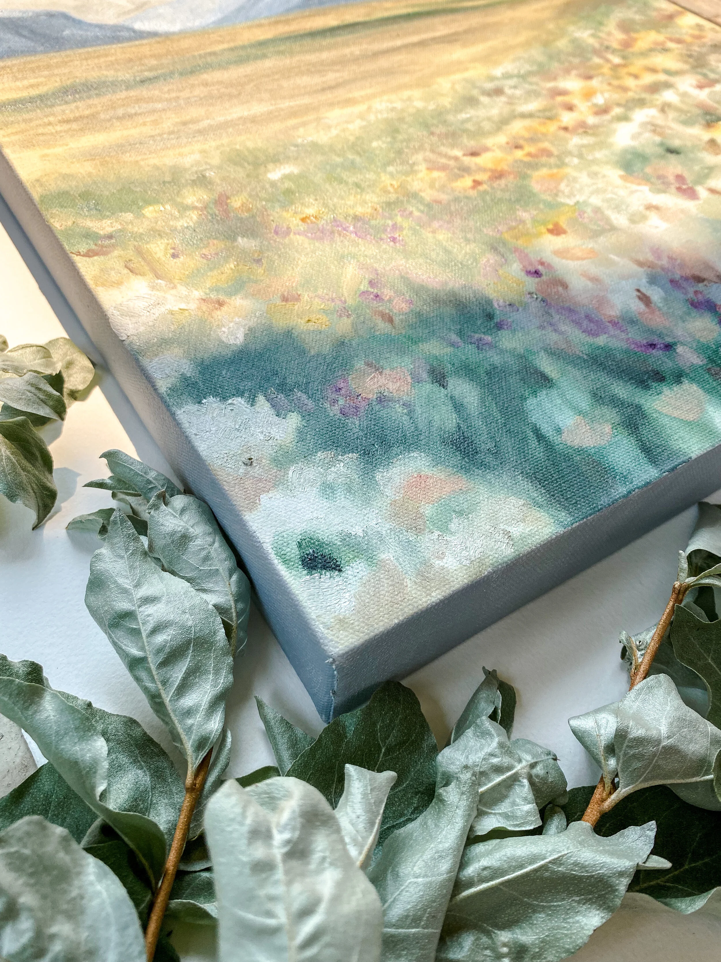 The earthy, warm paintings will be released one week, followed by the vast meadows, and the collection will be complete with the release of the blue sky paintings.