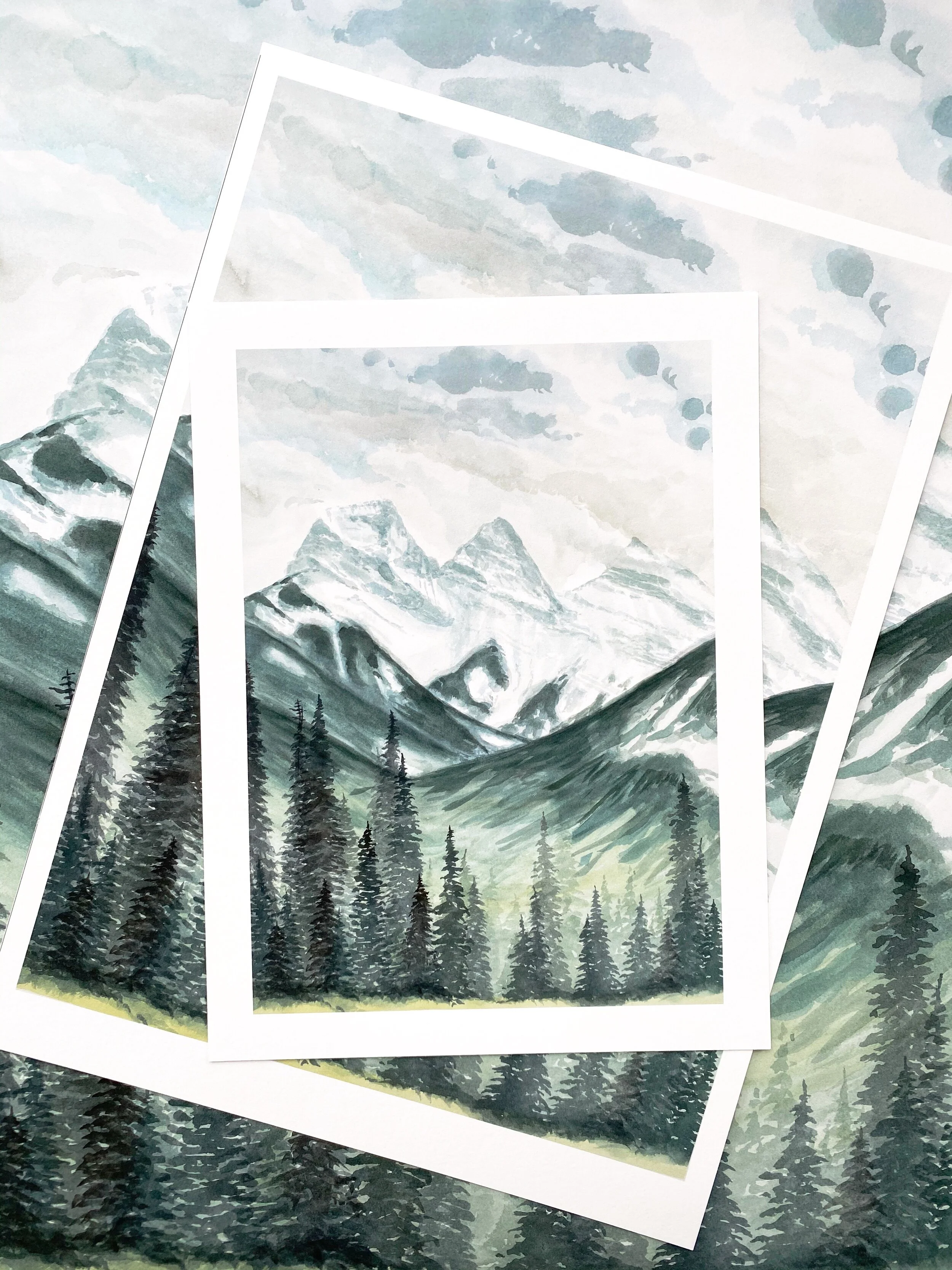Winter in the Rockies | Three Sisters Fine Art Gouache Print