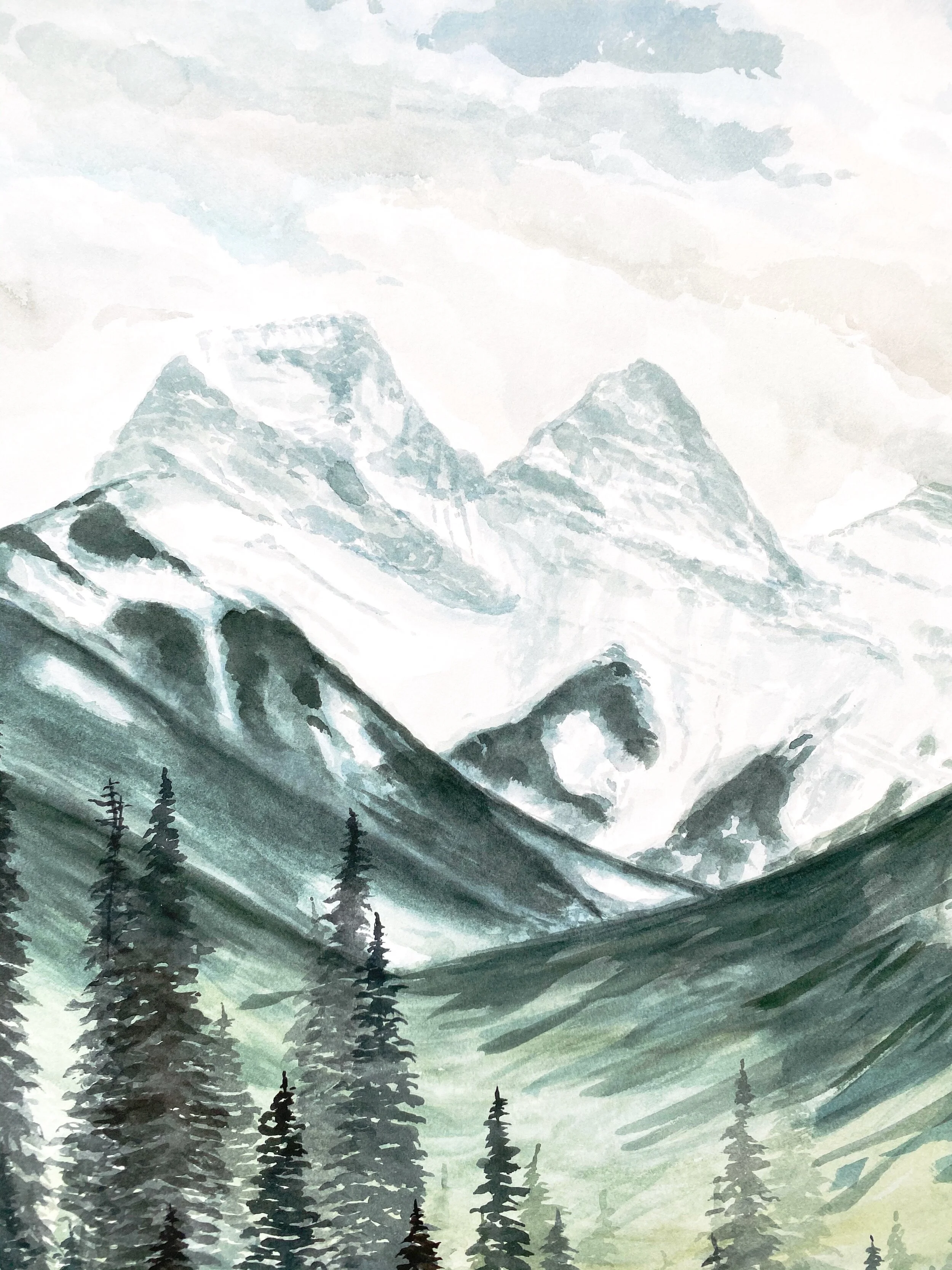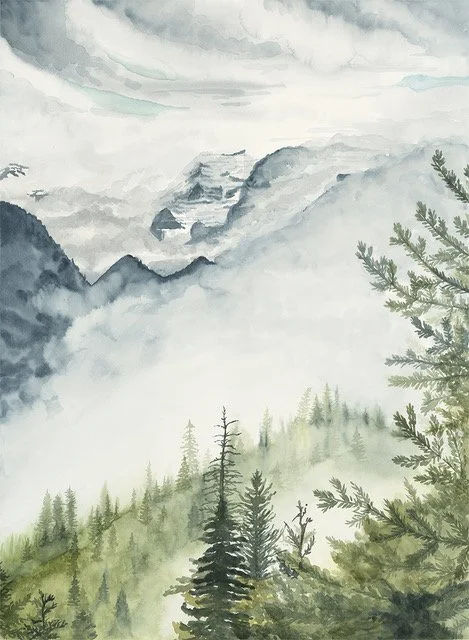 Misty Mountain Peak | Alpine Fine Art Watercolor Print