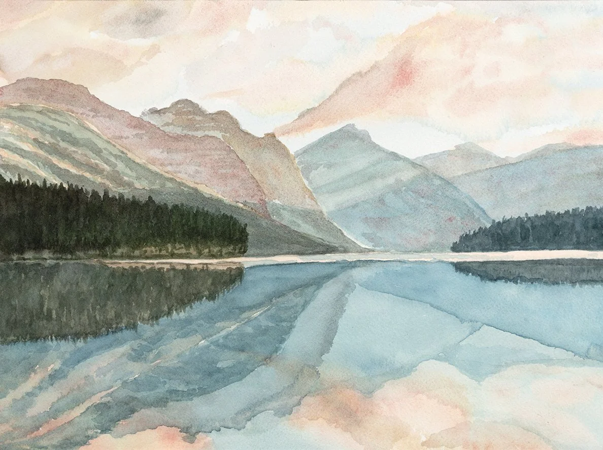 Waterton Lake at Dusk | Fine Art Watercolor Print